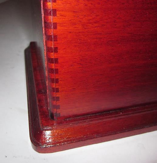 The mahogany cabinet is a historically accurate replica -- but not just a "home handyman special" -- a professionally made exact copy -- right down to the delicate finger joints that are also routed to soften the lines of the corners. This is the highest quality work and virtually indistinguishable from the original.