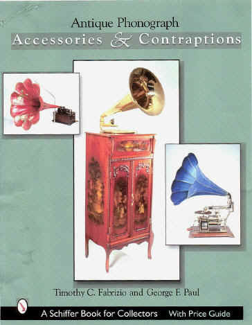 ANTIQUE PHONOGRAPH GADGETS ,GIZMOS AND GIMMICKS, by Timothy C. Fabrizio and George F. Paul. An important member of the series by these award-winning authors, covers a vast variety of HORNS, ATTACHMENTS, NEEDLE TINS, RECORD CABINETS, ADVERTISING, SIGNS, CATALOGUES AND POST CARDS. 500 color photographs, hardcover. Autographed, $49.95.
