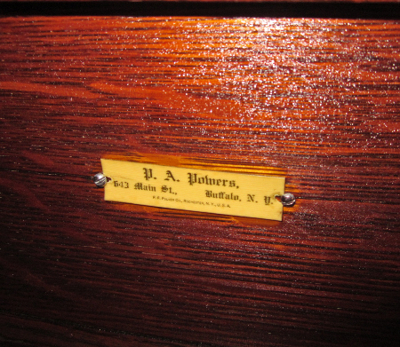 Inside the cabinet we really can appreciate the impact of this instrument -- the motor is spotless. Why are OUR machines better than any other seller's? Because we don't "jury rig" our machines with whatever junk we have laying around the shop to get them out the door. We adjust and test our machines for optimum results. It is evident in every aspect of this instrument that it has been lovingly preserved and maintained oved the long years.