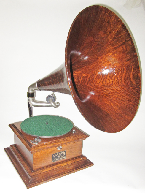 A beautiful -- and TUNEFUL -- visitor from the distant past. This Victor II is a stunning example of an early 20th-century music machine. The original Victor-made oak horn is especially noteworthy. These "smooth surface" wooden horns were specifically designed for the II, and featured some of the very best quarter-sawn oak figures in the wood that Victor offered.